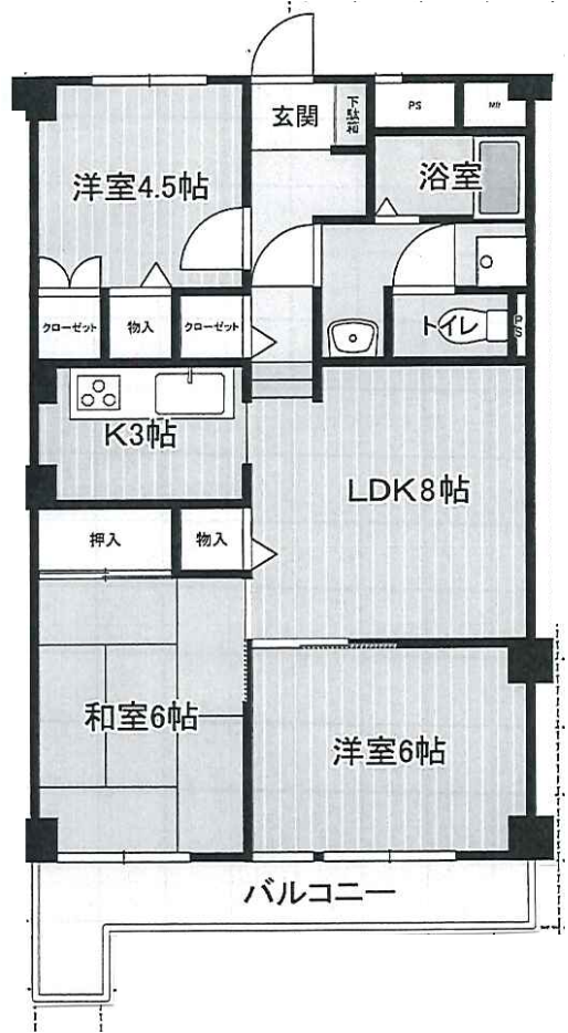 Yokosuka Base Main Gate 11 min. (4.1 km) drive, JR Kinugasa Station 8 min. (500m) walk / Renovation, Parking space, Three bedrooms, Refrigerator, Washer/Dryer, Floor size 754 sq. ft.