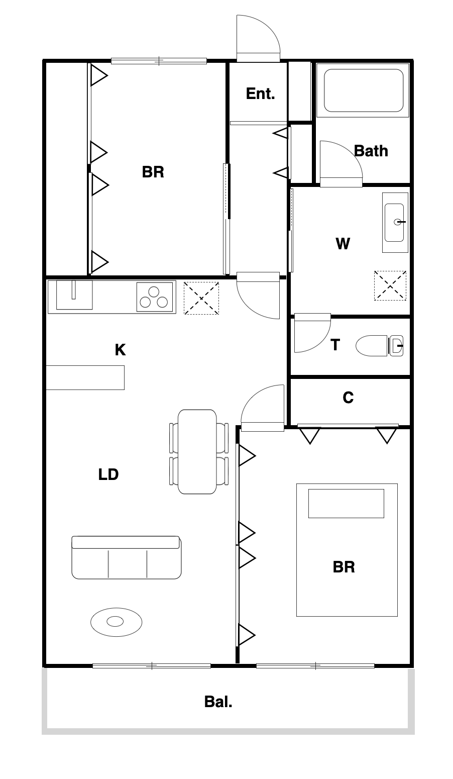 Yokosuka Base Womble Gate 6 min. (450m) by walk /Furnished(Bed, Couch, Dining Table, TV, Washer, Dryer, Refrigerator, etc.), Floor size 558 sq. ft., Two bedrooms, Free Wife